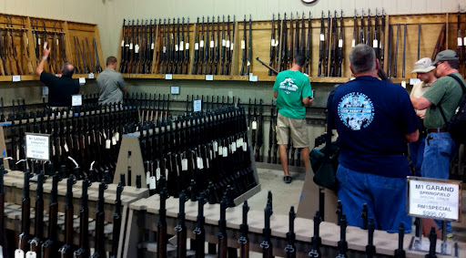 One thing occurred to me while we were looking around: Gun people are some of the nicest people around. As you can see, there were quite a few people in the store looking at guns. Some were newbies like us, but a lot were old hands who were looking for a diamond in the rough. When they noticed that we were seriously looking, several older shooters took us under their wings and explained how to grade these rifles, how gauging the muzzle and the chamber works, and how to tell when the receiver, muzzle, trigger, stock, and all of the other parts were manufactured and by whom. Tell me you’d find that at most other activities where the old hands are competing with the newbies to buy quality merchandise.