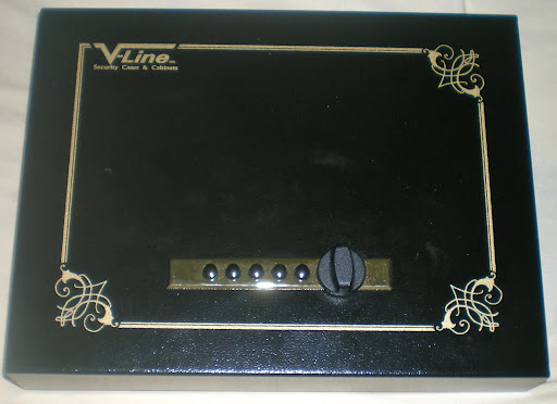 I’d looked at several handgun safes, and after discussing it with my concealed carry instructor, who also had several children at home, I checked out the V-Line Top Draw. This 12 by 9 by 2.5 inch steel box includes a top lid that’s as tall as the box itself, making prying it open difficult, a programmable five button mechanical lock, and pre-drilled holes for securing it to a stud, closet shelf, or drawer.