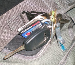 | One of two key hooks. This one is located on the strap, the other one is in the front pocket. This is very convenient when going through airport security. |