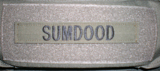 One upshot of the hook and loop is that you can put on hook and loop patches. I got a nametape from Military Names, and it is easily put on and taken off of the hook and loop panel on top of the bag.