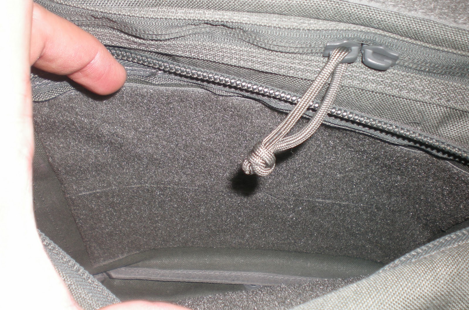 | Interior pocket. Hook and loop material on both sides allows for addition of accessories |