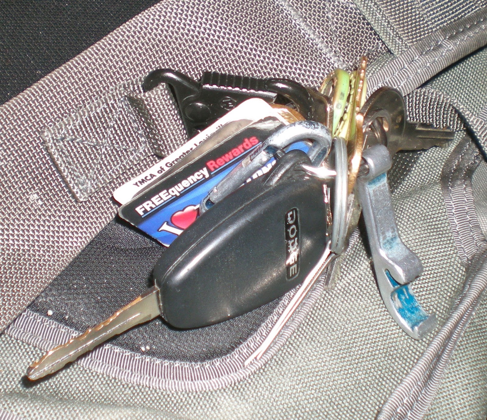 | One of two key hooks. This one is located on the strap, the other one is in the front pocket. This is very convenient when going through airport security. |