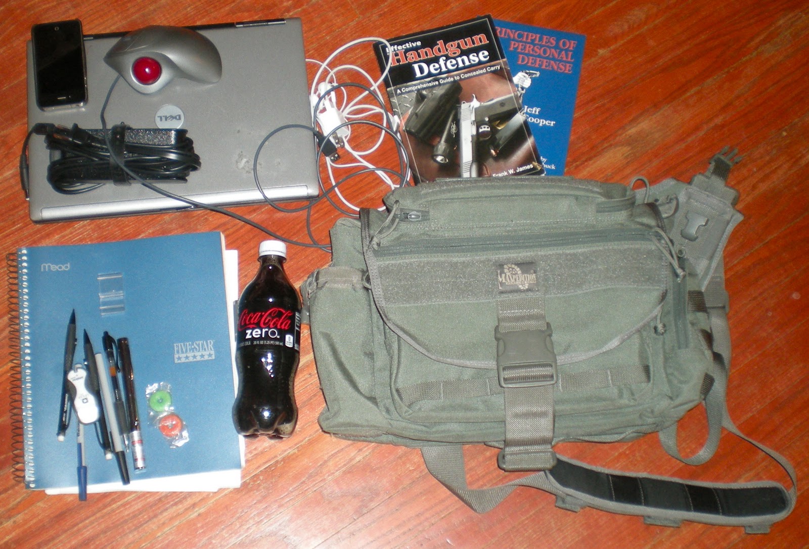 Like most geeks out there, I carry a laptop and the sundry odds and ends it needs for work. I used backpacks from Targus for several years, which were wonderful backpacks, but they were so large that I found myself throwing more and more crap into them as time went on. Eventually, I was carrying as much junk to work as I used to take on ruck marches.