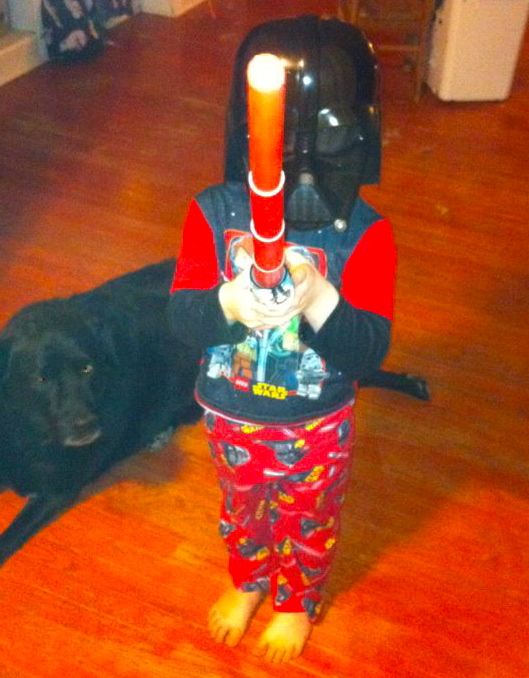 That, ladies and gentlemen, is a talking Darth Vader mask. You’ll notice his Lego Star Wars PJ’s, red light saber, and now he’s walking around telling me “I am your father” and “Now I am the master”. Yep, I’m raising a nerd. I must do something just as nice for Irish Woman someday.